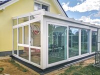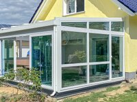 Thermisch getrennter Wintergarten in Berlin der extra so konfiguriert/hergestellt und an die Gegebenheiten des Gebäudes angepasst wurde.